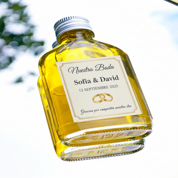 Se venden en packs para facilitarte la organización y son totalmente personalizables: tú pones la fecha y el nombre, nosotros ponemos el alma. Regala salud, tradición y un recuerdo que tus invitados te agradecerán cada vez que aliñen sus platos.